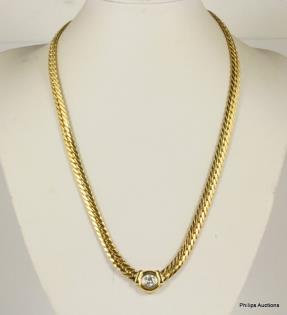 A SMOOTH WOVEN 18CT YELLOW & WHITE GOLD CHAIN 0.65CT DIAMOND SOLITAIRE SET 25.3GRAMS