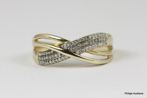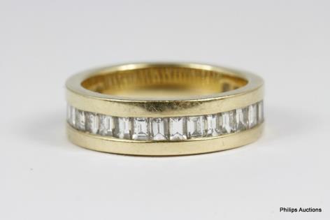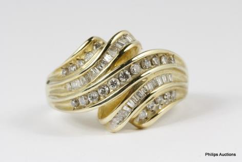 A 10CT YELLOW GOLD 0.75CTS MULTI RAILED BAGUETTE AND BRILLIANT CUT DIAMOND DRESS RING 7.8GRAMS