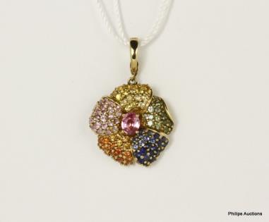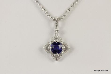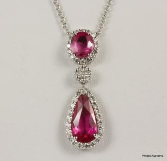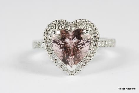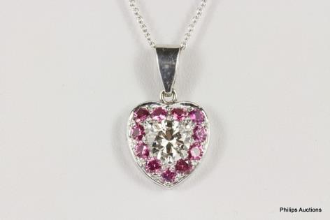 A 9CT WHITE GOLD, 1.50CTS BRILLIANT CUT DIAMOND AND 1.65CTS PINK SAPPHIRE SET HEART PENDANT 6.2GRAMS