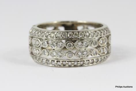 A WIDE 18CT WHITE GOLD PIERCED FILIGREE WORKED ETERNITY BAND RING 4.5GRAMS