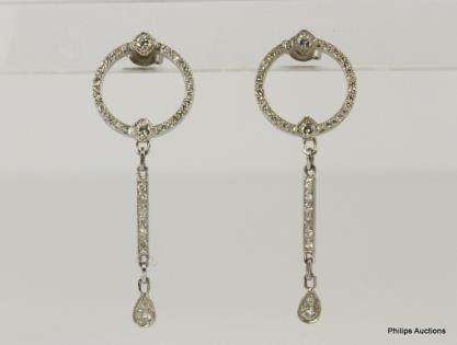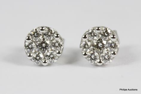 A PAIR OF 0.68CT DIAMOND SET FLORAL HOOP DESIGNED 14CT WHITE GOLD EARRINGS 3.1GRAMS