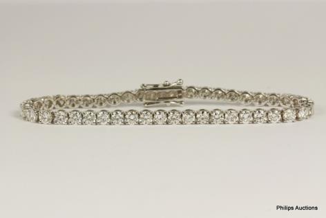 AN 18CT WHITE GOLD DIAMOND LINE BRACELET TOTALLING 2.72CT 8.9GRAMS