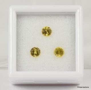 THREE LOOSE ROUND GOLDEN YELLOW SAPPHIRES TOTALLING 1.01CT