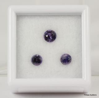 THREE LOOSE ROUND PURPLE SAPPHIRES TOTALLING 1.09CT