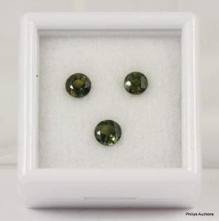 THREE LOOSE ROUND GREEN SAPPHIRES TOTALLING 1.26CT