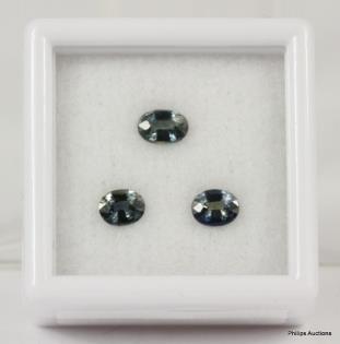 THREE LOOSE OVAL FACETED TEAL SAPPHIRES TOTALLING 1.11CT