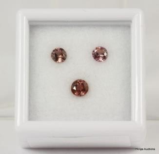 THREE LOOSE ROUND PEACH APRICOT SAPPHIRES TOTALLING 0.84CT