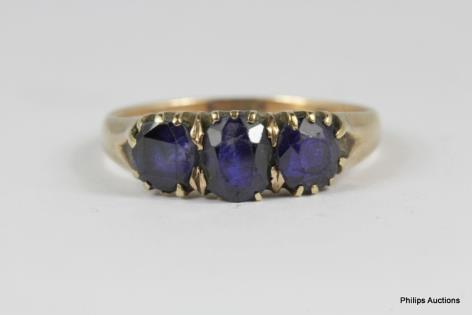 ONE 10CT YELLOW GOLD THREE STONE SAPPHIRE SET RING 2.9GRAMS