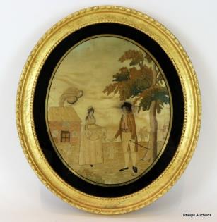A GEORGIAN WOVEN SILK EMBROIDERY
