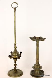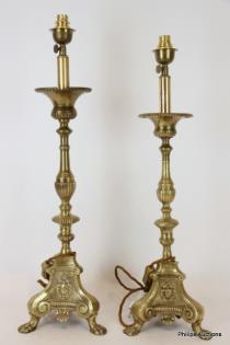 TWO BAROQUE STYLE BRASS ELECTRIFIED PRICKET STICKS