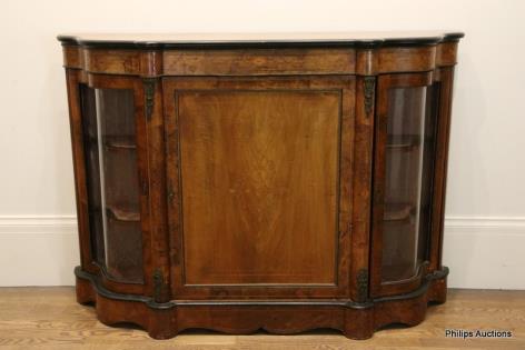 A VICTORIAN INLAID WALNUT CREDENZA