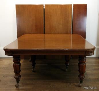 A LARGE VICTORIAN MAHOGANY EXTENSION DINING TABLE