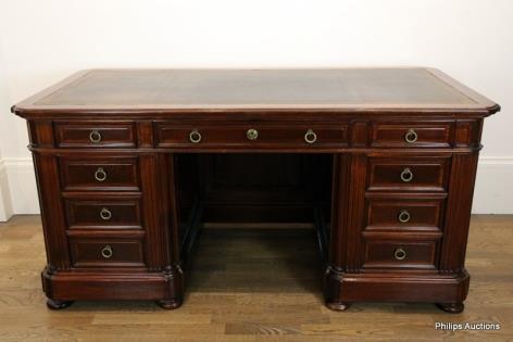 A GOOD VICTORIAN MAHOGANY TWIN PEDESTAL DESK