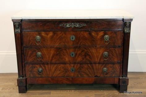 A FRENCH EMPIRE STYLE FLAME MAHOGANY COMMODE