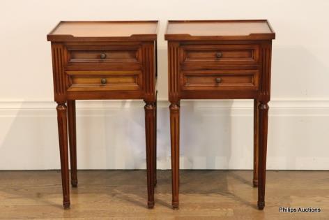A PAIR OF LOUIS XVI STYLE CHERRYWOOD BEDSIDE TABLES