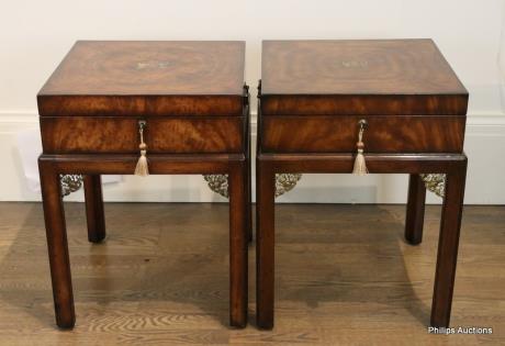A PAIR OF REGENCE STYLE CHERRYWOOD BEDSIDE TABLES
