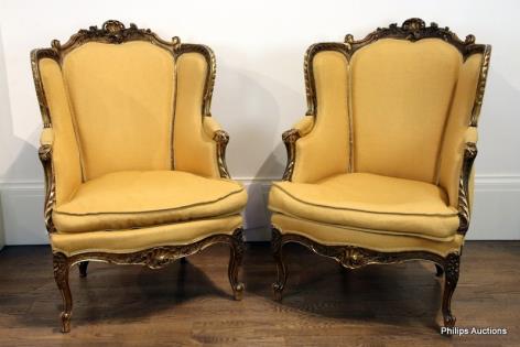 A PAIR OF LOUIS XV STYLE WINGBACK BERGERES