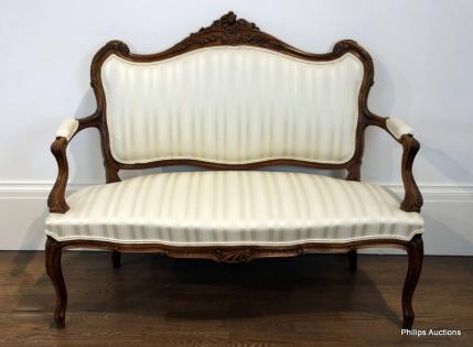 A LOUIS XV STYLE CARVED WALNUT SETTEE