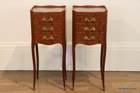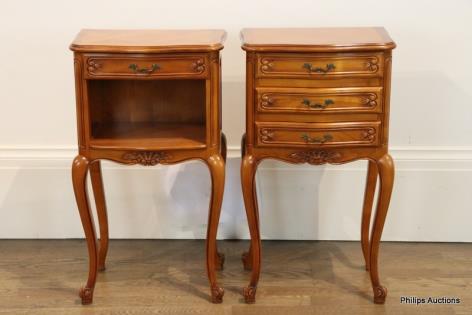 A PAIR OF LOUIS XV-STYLE CHERRYWOOD BEDSIDE TABLES