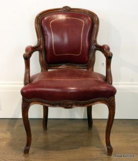 A CARVED WALNUT CHAIR IN THE LOUIS XV MANNER