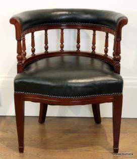 A GREEN LEATHER UPHOLSTERED MAHOGANY CAPTAINS CHAIR