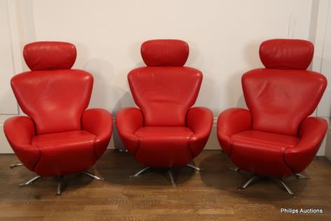 THREE TOSHIYUKI KITA 'DODO' RED LEATHER RECLINING CHAIRS FOR CASSINA
