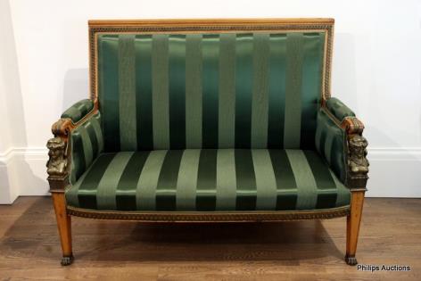 A FRENCH EMPIRE STYLE BRONZE-MOUNTED SETTEE