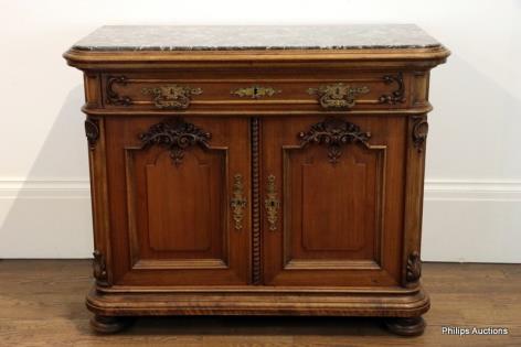 A FRENCH MARBLE TOP WALNUT SIDEBOARD