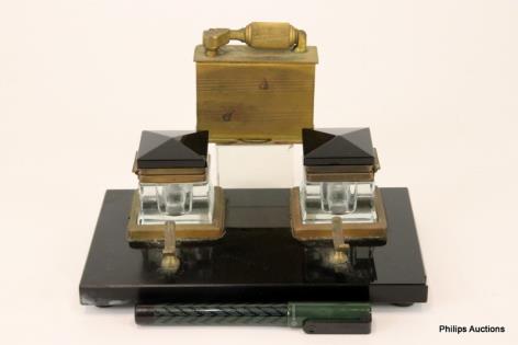 AN ART DECO DESK SET, PEN AND TABLE LIGHTER