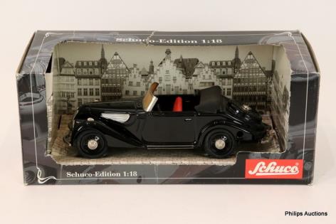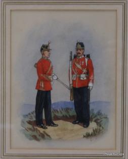 A BOXED TINPLATE PING-PONG WINDUP TOY AND THREE CAST SOLDIERS