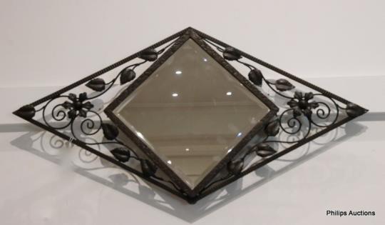 AN ART DECO WROUGHT IRON WALL MIRROR