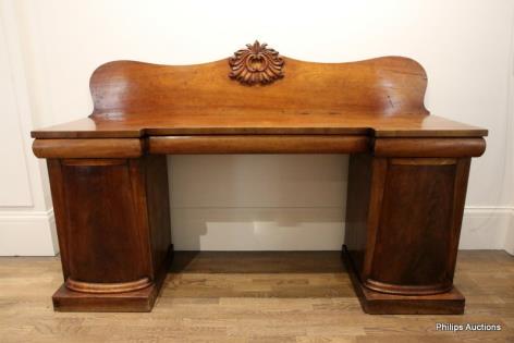 AN AUSTRALIAN CEDAR TWIN PEDESTAL SIDEBOARD