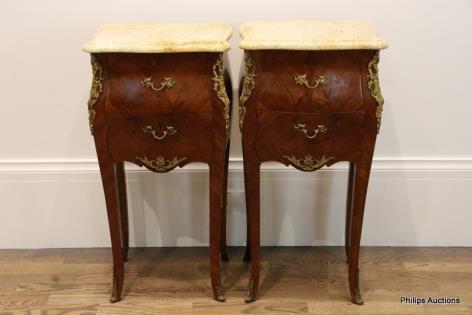 A PAIR OF LOUIS XV STYLE CHERRYWOOD BEDSIDE TABLES