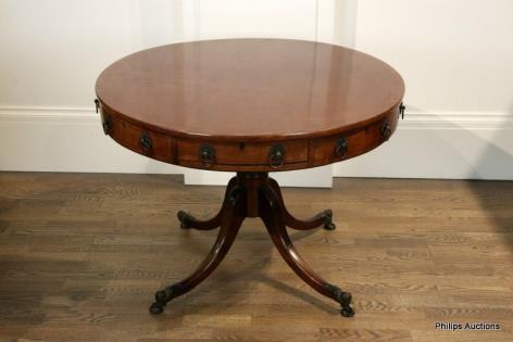 A REGENCY STYLE MAHOGANY TILT-TOP DRUM TABLE
