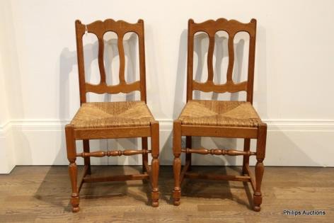 A SET OF SIX FRENCH PROVINCIAL REGENCE STYLE OAK AND RUSH CHAIRS