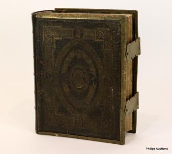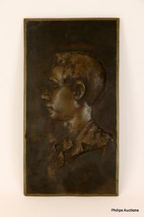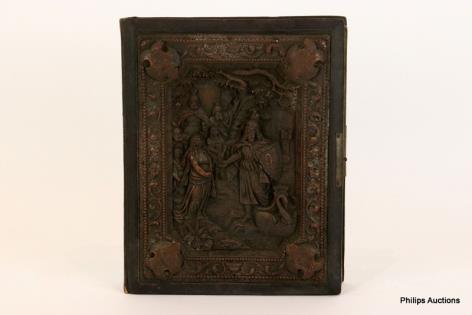 A LATE 19TH CENTURY PHOTO ALBUM WITH EMBOSSED PLAQUE COVER