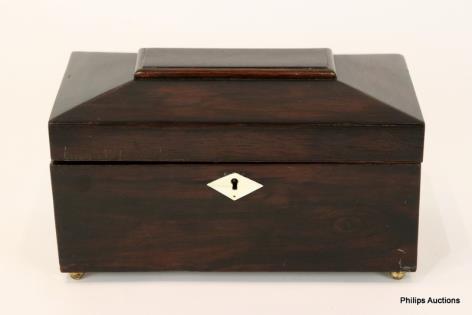 A SARCOPHAGUS TOP ROSEWOOD BOX