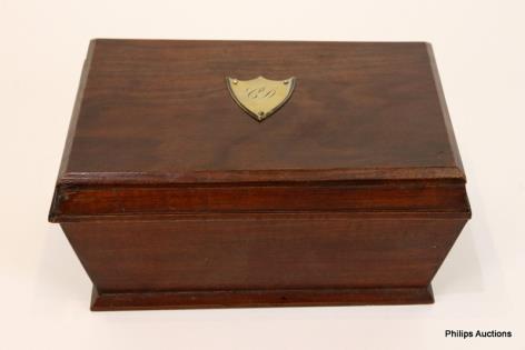 A MAHOGANY JEWELLERY BOX