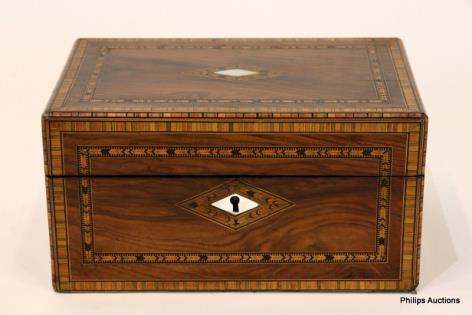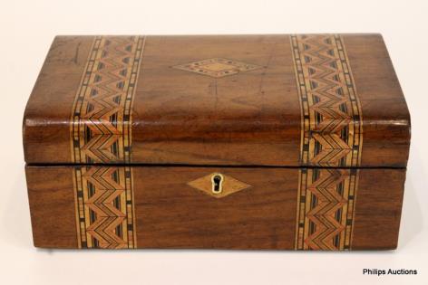 A VICTORIAN TUNBRIDGE WARE SEWING BOX