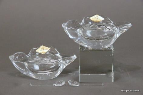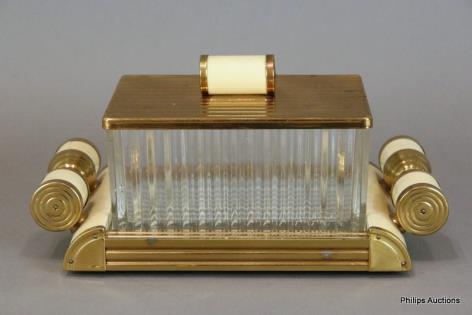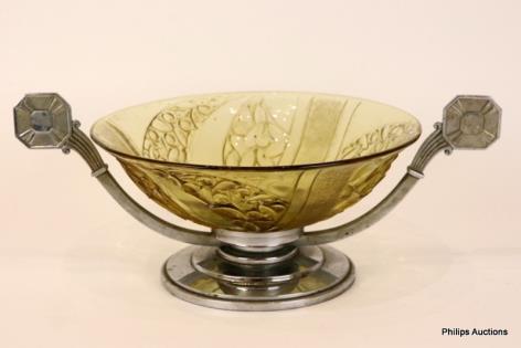 AN ART DECO GLASS AND METAL BISCUIT BOX