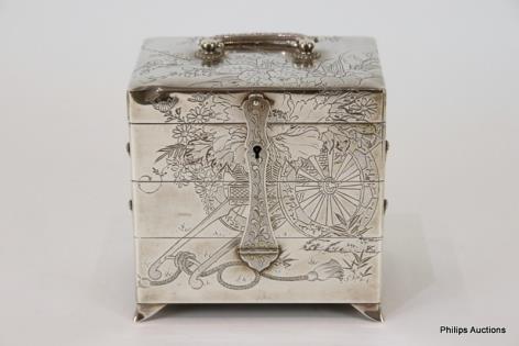 A FRENCH GILT SPELTER JEWELLERY CASKET