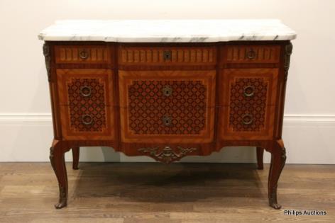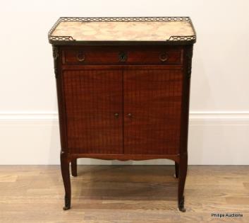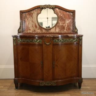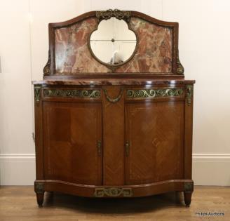 A FINE LOUIS XVI STYLE TULIPWOOD AND MARBLE SIDEBOARD