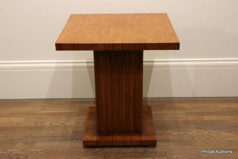 AN ART DECO TULIPWOOD PEDESTAL SIDE TABLE