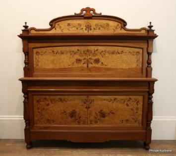 AN ART NOUVEAU FLORAL MARQUETRY BED IN THE MANNER OF EMILE GALLE