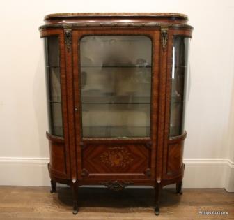 A FINE TRANSITIONAL STYLE VERNIS MARTIN TULIPWOOD VITRINE