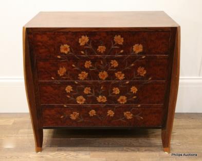 AN ART DECO INLAID BURR WALNUT AND ROSEWOOD COMMODE