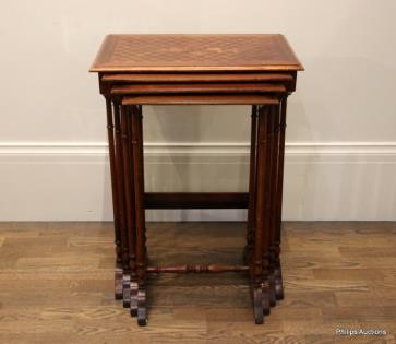 A FRENCH NEST OF FOUR INLAID MAHOGANY TABLES