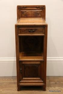AN ART NOUVEAU WALNUT BEDSIDE TABLE