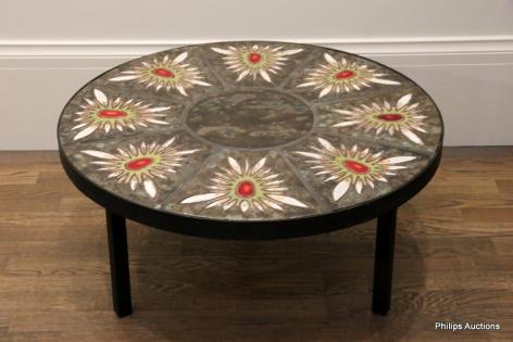 A FRENCH CERAMIC TILE INSET COFFEE TABLE BY CORROYEZ