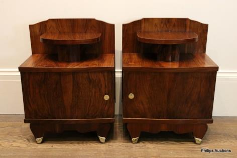 A PAIR OF ART DECO BEDSIDE TABLES